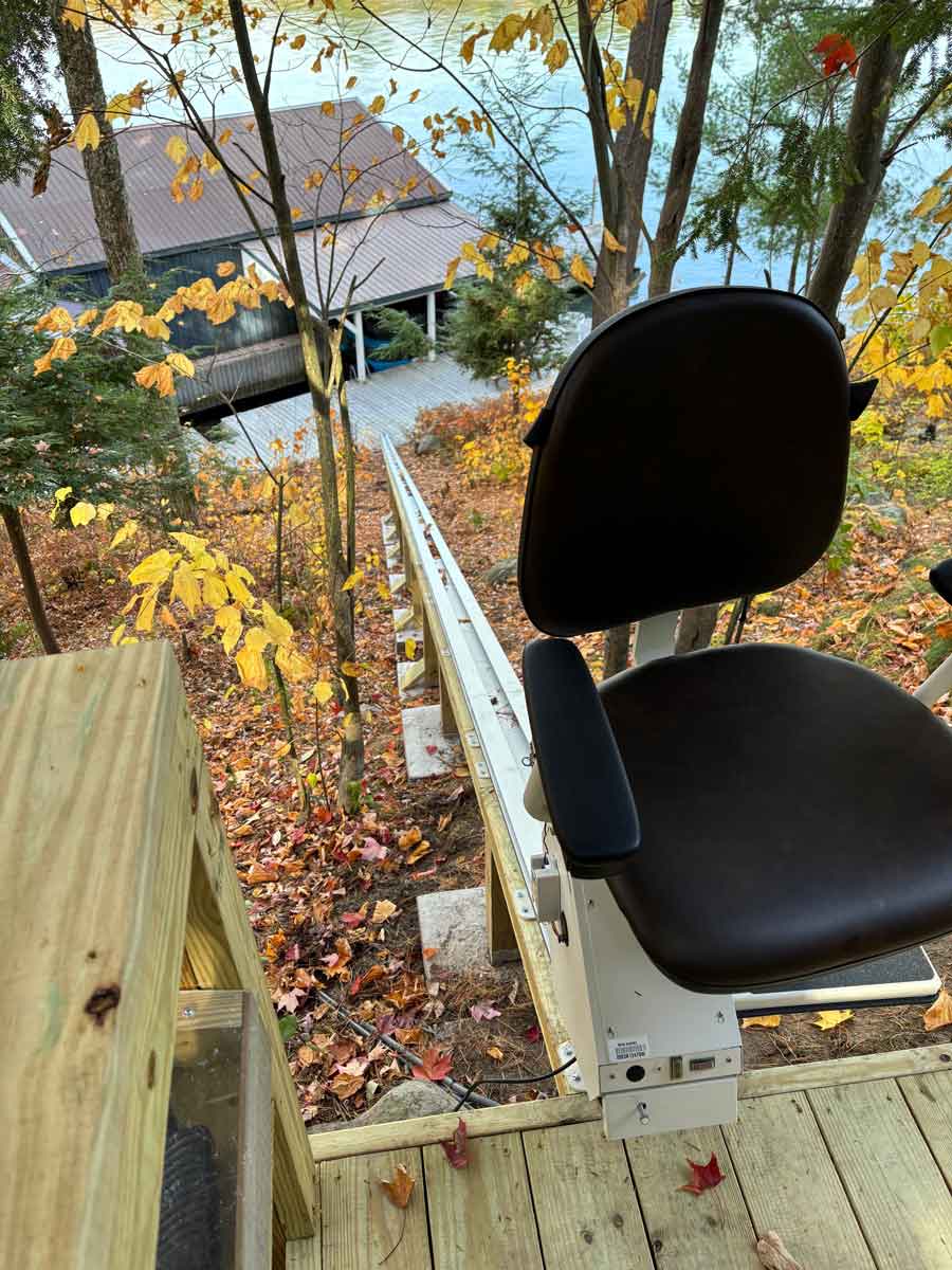 With a price much lower than a tram, the Crest Lake Home Lift provides an extra long track outdoor lift suitable for lake living. If your installation is away from the power grid, the optional solar charger for the included batteries will keep your lift ready to go when you are. (Solar Charger must be placed where it has good view of the sun, not under tree or other shade.)